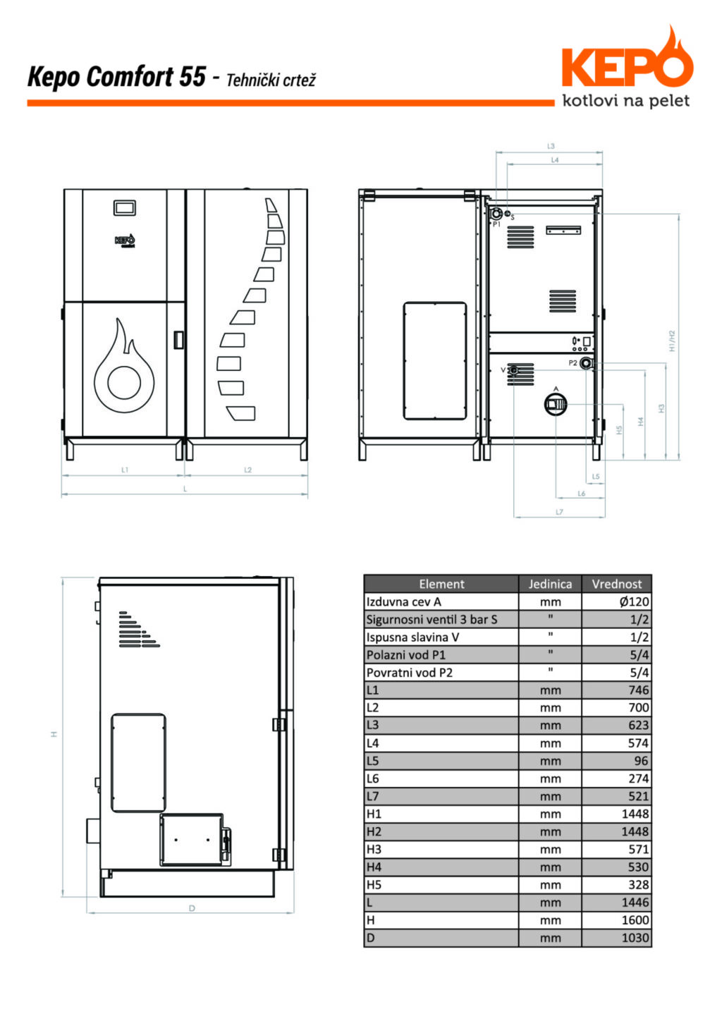 KEPO u ponudi ima pet snaga COMFORT modela: 15 kW, 20 kW, 25 kW, 35 kW i 55 kW